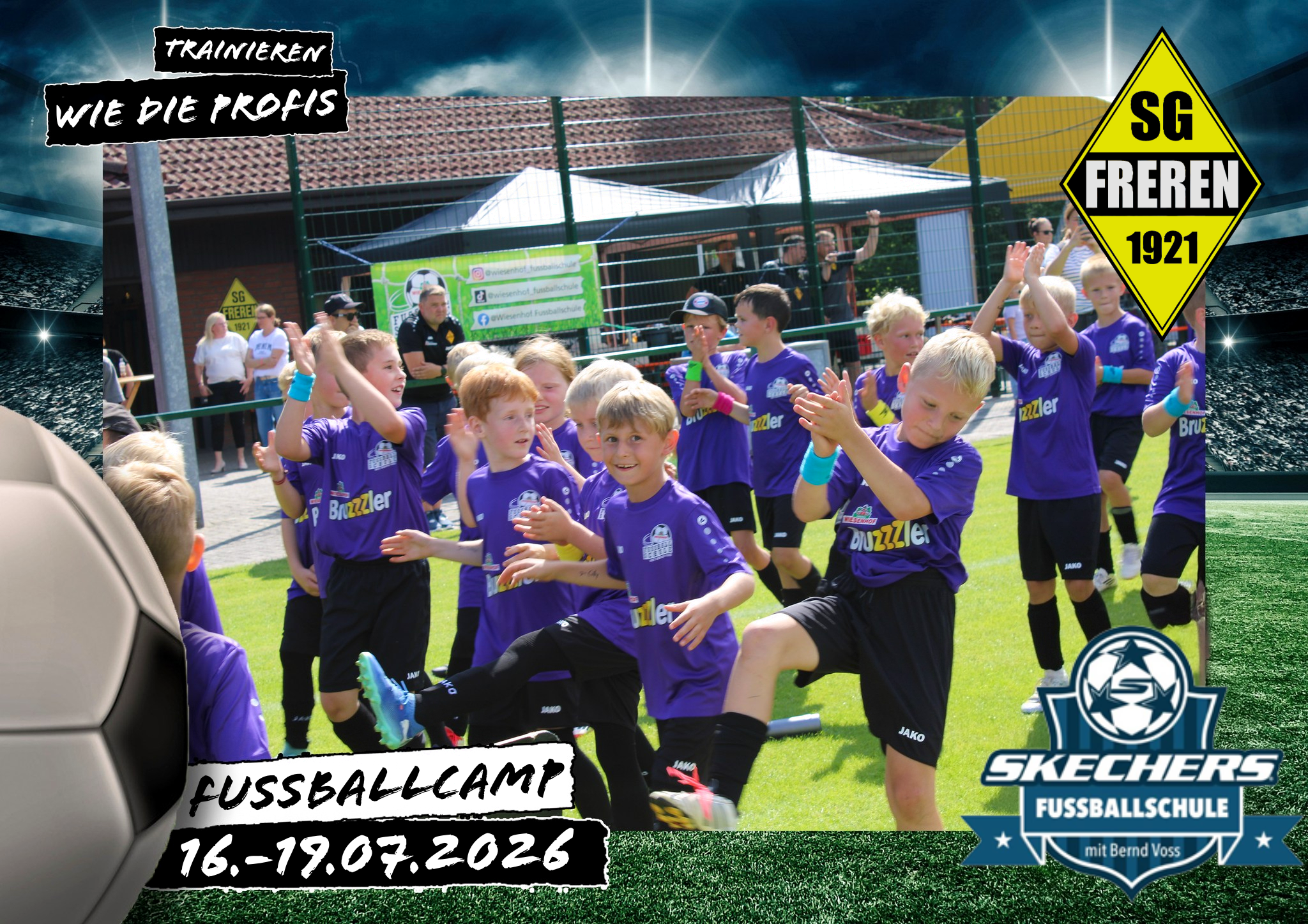 Vom 16.07. bis 19.07.2026 findet das 4-tägige Fußballcamp der Skechers-Fußballschule bei der SG Freren statt. Egal ob Anfänger oder Talent – alle fußballbegeisterten Kids von 5 bis 16 Jahren sind willkommen!